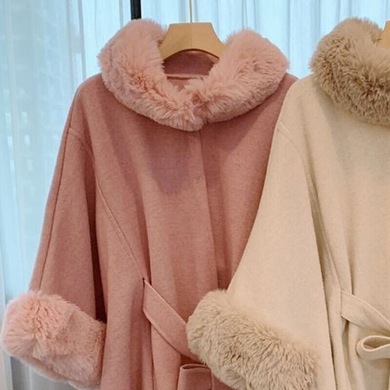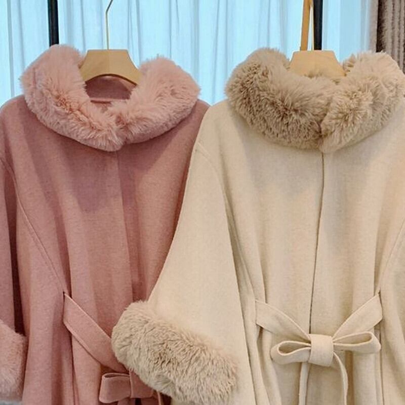 Nomikuma Fahsion 毛皮パッチワーク女性ジャケットレトロ因果蝶ネクタイマント生き抜く秋冬 2021 ショールコート 6N756 リボン オータム 秋物 ウィンター 冬物 kor83417863266