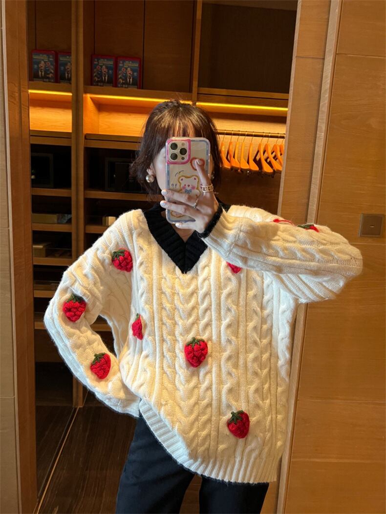 Nomikuma スウィートヒットカラー V ネック長袖女性セーター 2022 秋冬プルオーバーニットトップス ロング 大人ガーリー キュート カジュアル オータム 秋物 ウィンター 冬物 Vネック kor34419375387