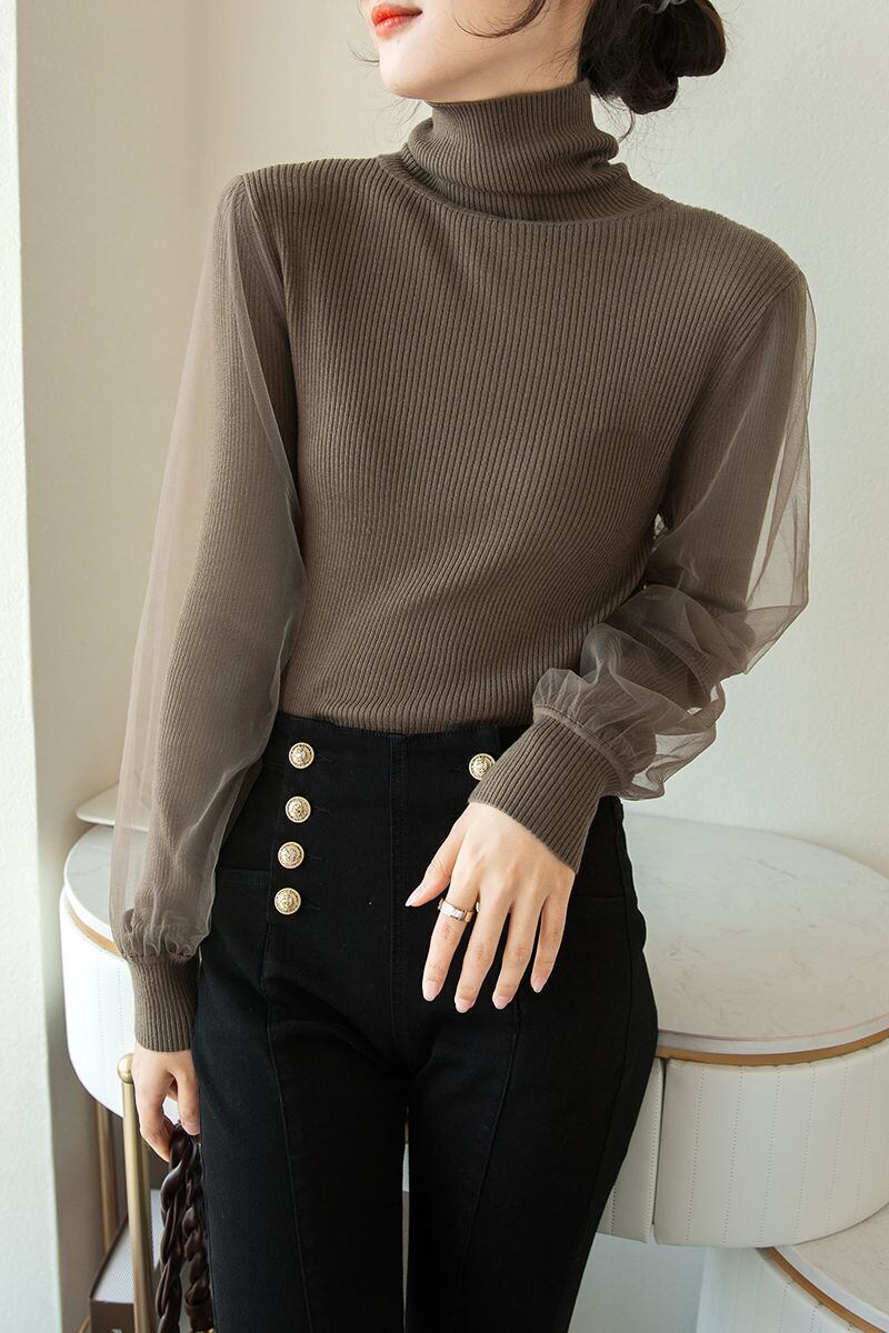 Nomikuma メッシュパッチワーク長袖プルオーバーニット 2020 秋冬タートルネックニットトップス女性セーター 6D676 ロング オータム 秋物 ウィンター 冬物 kor70169827510