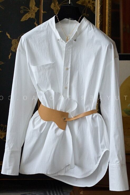 Nomikuma スタンドネック長袖ブラウストップス因果シングルブレスト女性シャツ 2022 春ベルトスリムウエスト ロング スプリング 春物 ハーネス kor75466301058