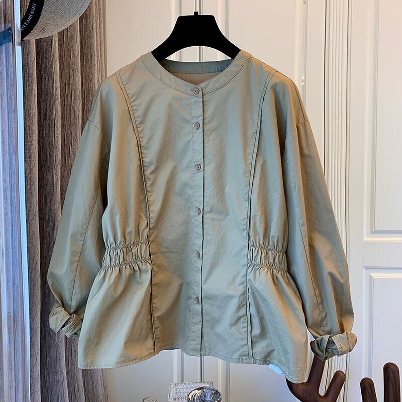 Nomikuma ひだスリムウエスト女性ブラウスシャツ長袖シングルブレストトップス因果秋モーダ 2021 6X118 ロング オータム 秋物 kor88396953006