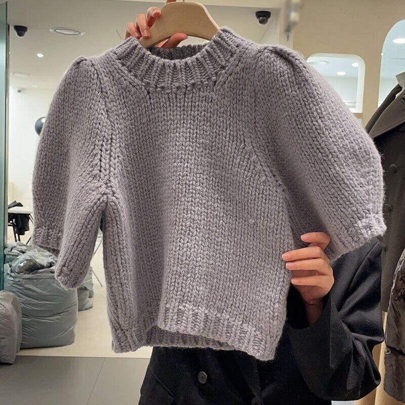 Nomikuma スウィート O ネックプルオーバーパフスリーブショートセーター 2022 春夏ニット因果無地女性ニットトップス 大人ガーリー キュート カジュアル スプリング 春物 サマー 夏物 Oネック ソリッドカラー kor800127971
