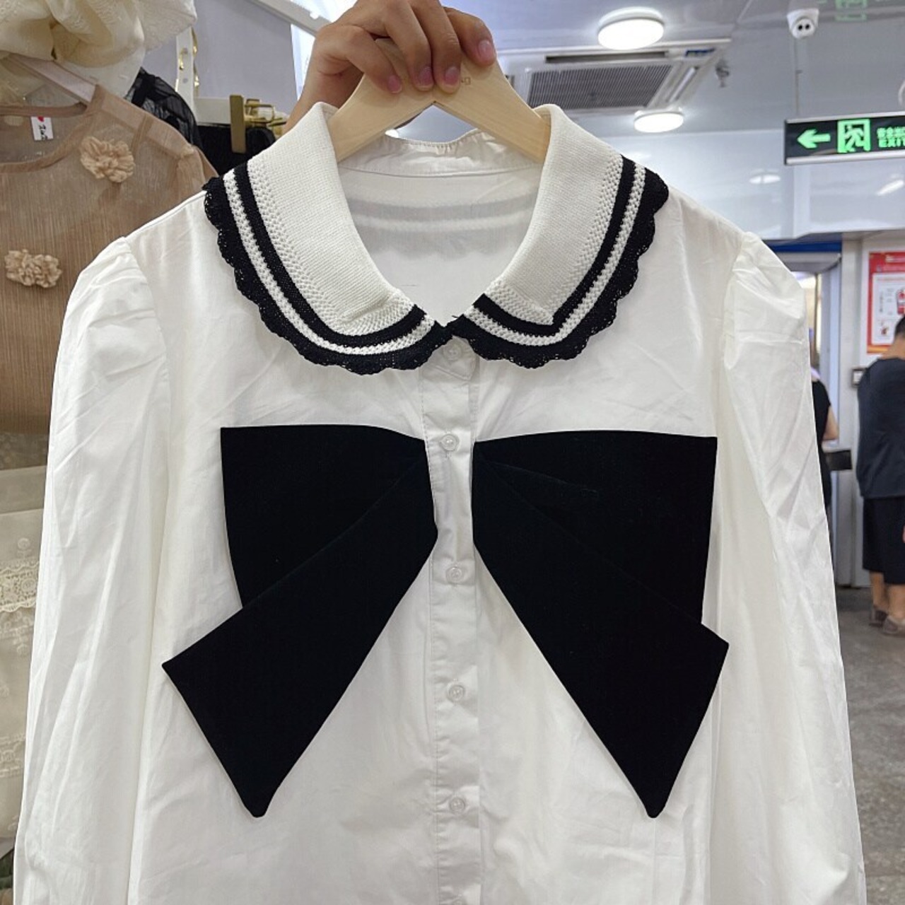 Nomikuma レディース トップス スウィート ヒット カラー ちょう結び ピーターパン カラー ブラウス シャツ 022 秋 長袖 デ ロング リボン 大人ガーリー キュート カジュアル オータム 秋物 kor47116120836