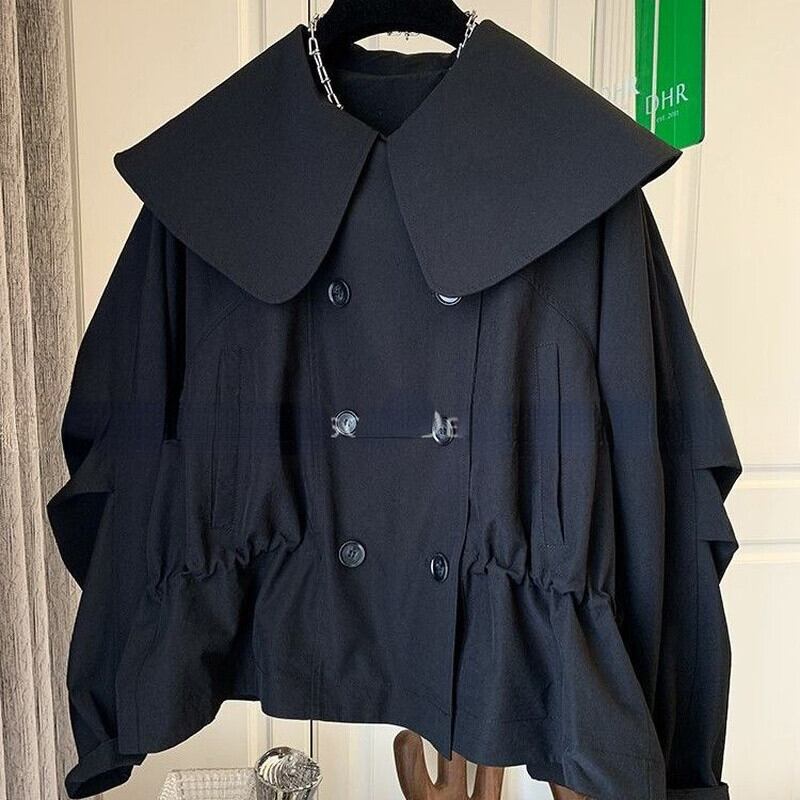 Nomikuma ピーターパン襟ダブルブレストショートコート 2022 秋の巾着スリムウエストサファリスタイルの女性のジャケット オータム 秋物 kor12056770394