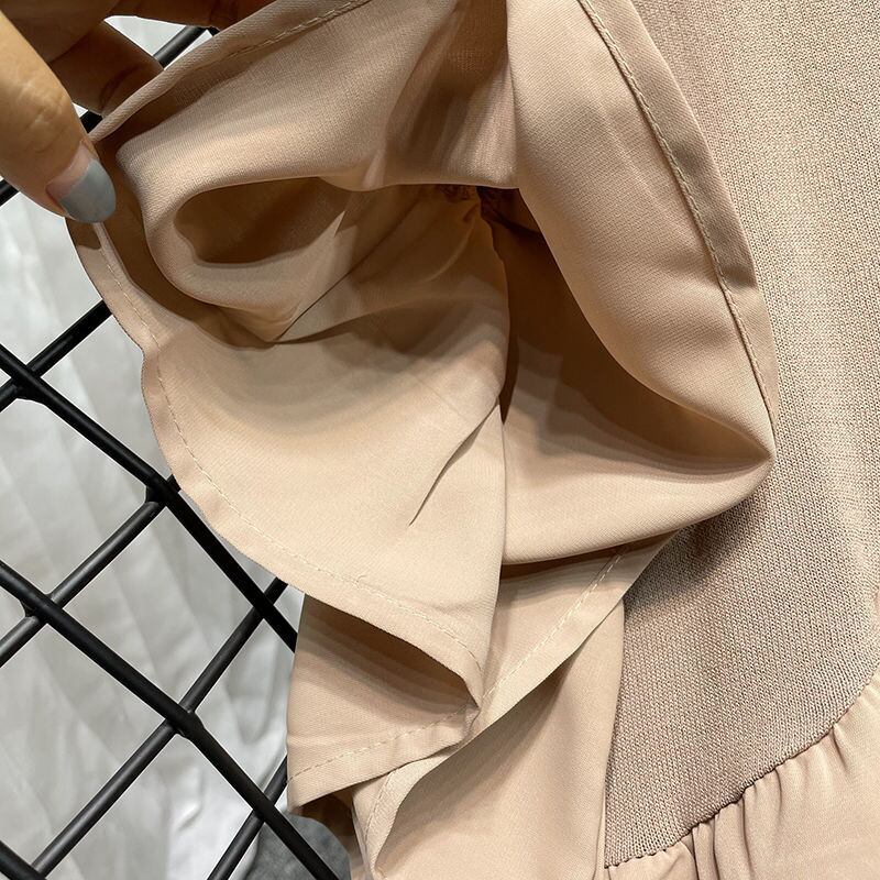 Nomikuma シフォン パッチワーク ニット トップス 2022 夏 薄手 フレアスリーブ ブラウス カジュアル Oネック プルオーバー ドールシャツ サマー 夏物 kor7137858898