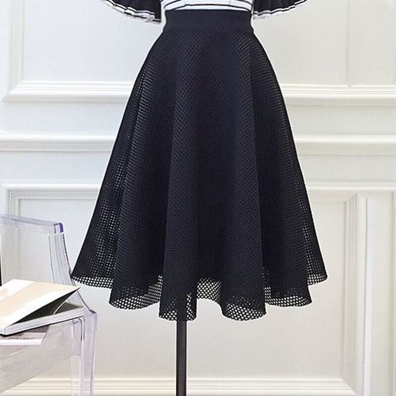 Nomikuma 2021 春メッシュチェック柄中空アウトスカートウエスト A ライン女性スカートスペース綿ファルダ 6G107 コットン スプリング 春物 Aライン kor75637838799