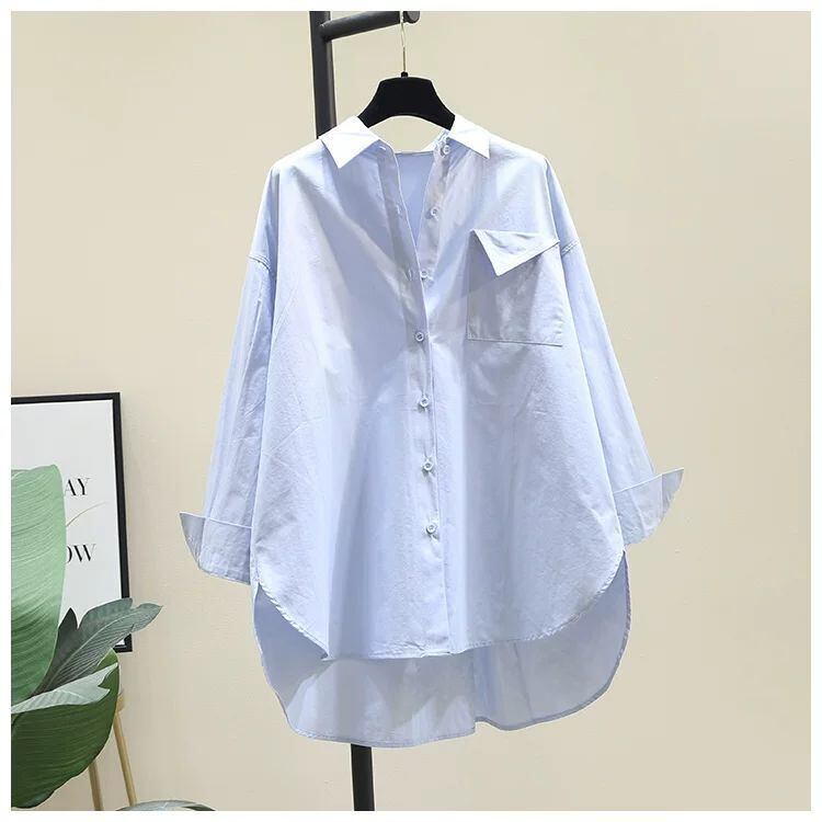 ノミクマ 因果 背中ひだ ミディアムロング ブラウス トップス 長袖 ターンダウンカラー シャツ 2022年 春デ スプリング 春物 kor18413108384
