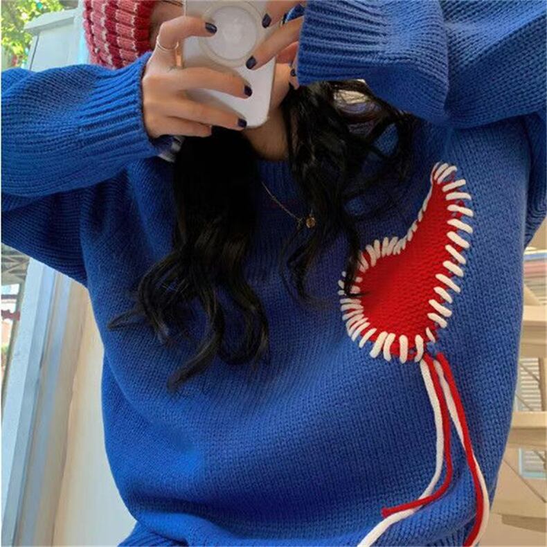 Nomikuma セーター女性秋冬プルシックなラブハートリボン因果長袖 O ネックプルオーバーニット ロング オータム 秋物 ウィンター 冬物 Oネック kor9920148639