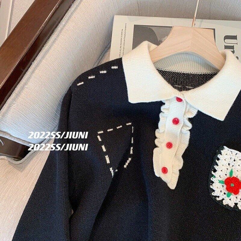 Nomikuma 女性セーターシックな漫画刺繍プル 2022 秋のヒットカラー長袖プルオーバーニットプル ロング オータム 秋物 kor39805618208