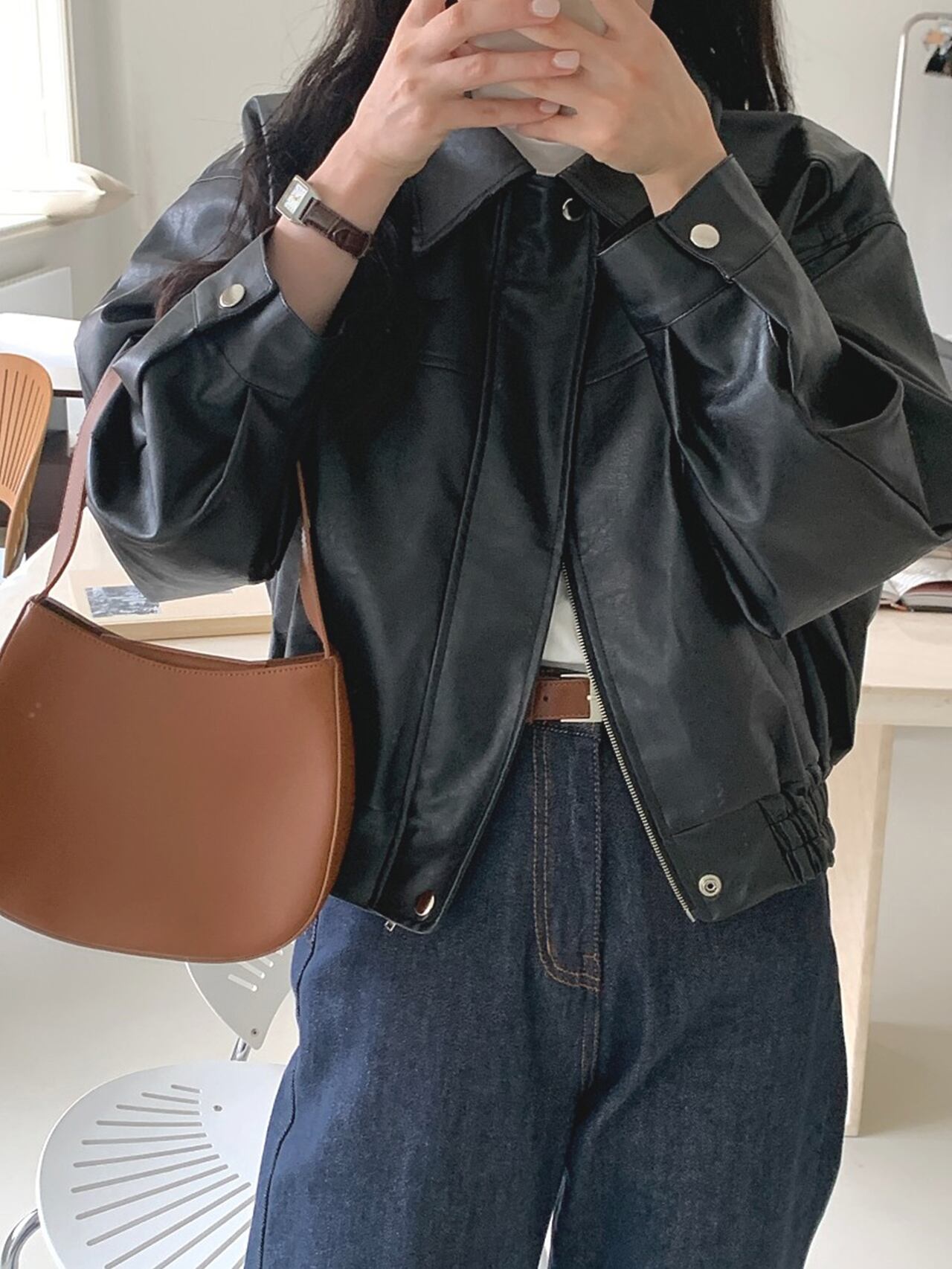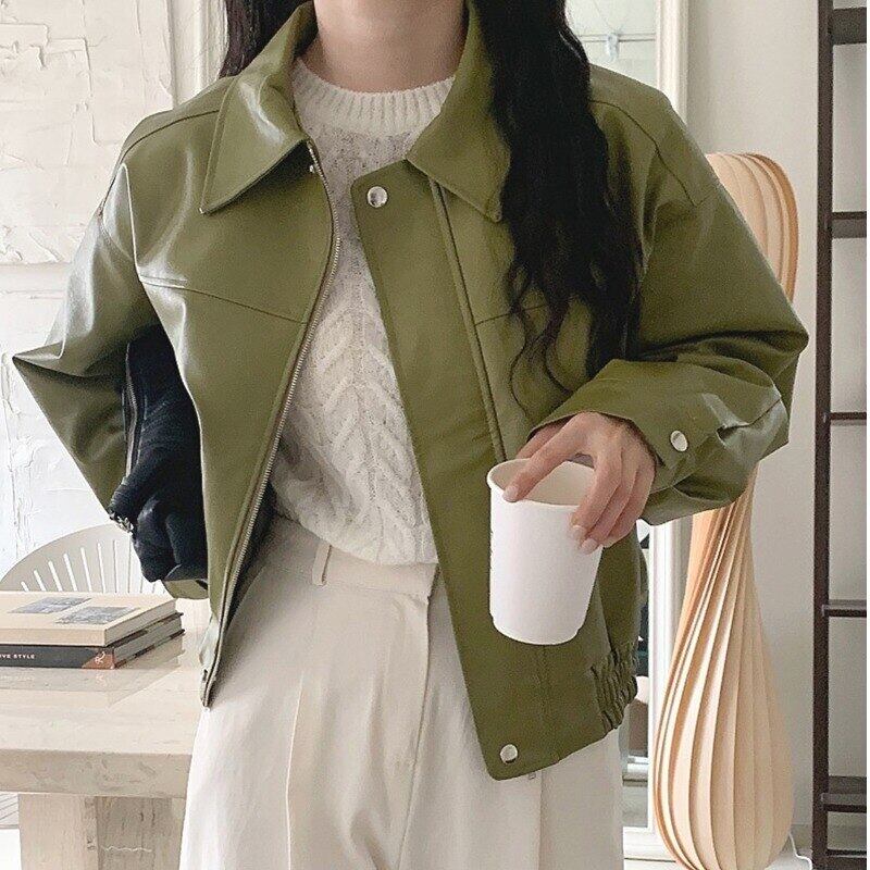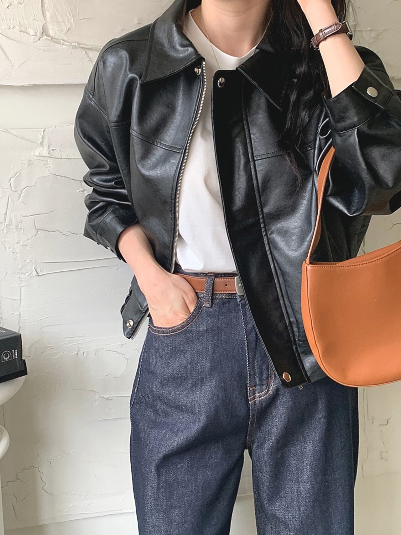 Nomikuma PU レザーショート女性 2022 秋冬ジャケット因果ジッパーターンダウン襟長袖コート ロング オータム 秋物 ウィンター 冬物 kor20176206743
