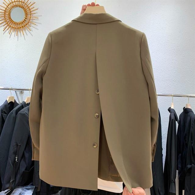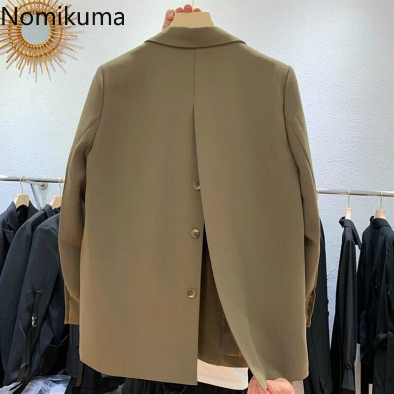 Nomikuma バックボタン分割ブレザーコート 2022 秋長袖女性スーツジャケット因果ノッチ襟ブレザー 6E284 ロング オータム 秋物 kor2386794498