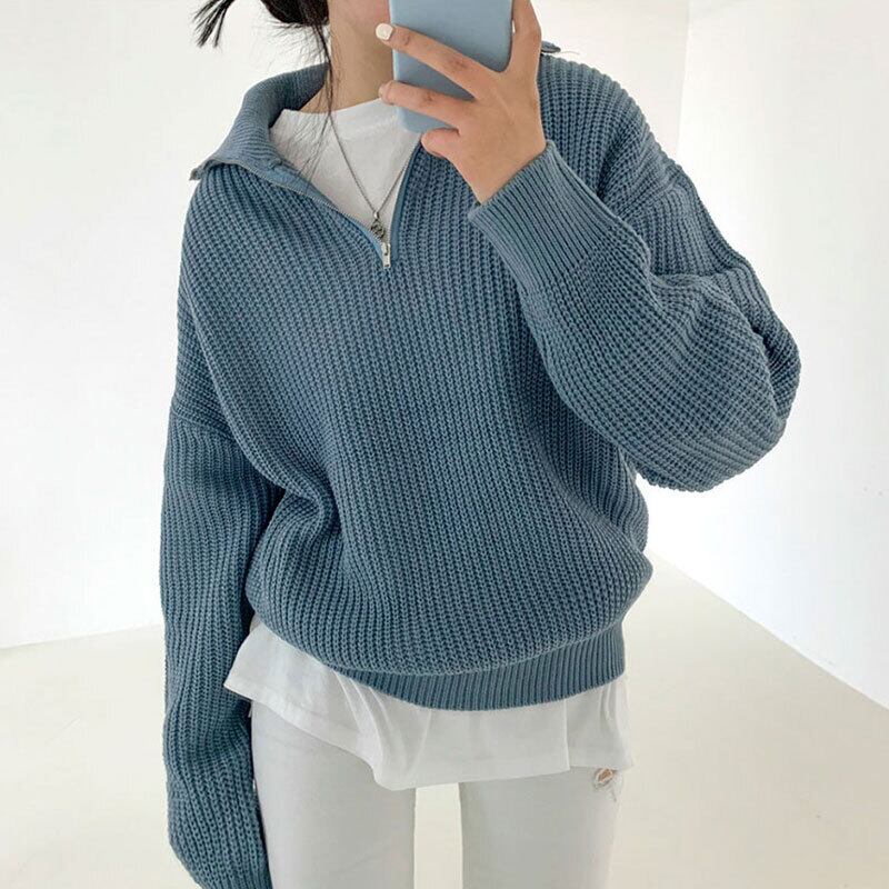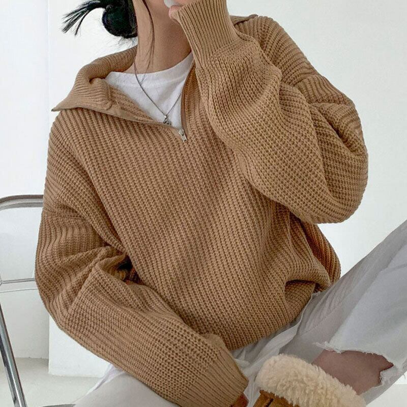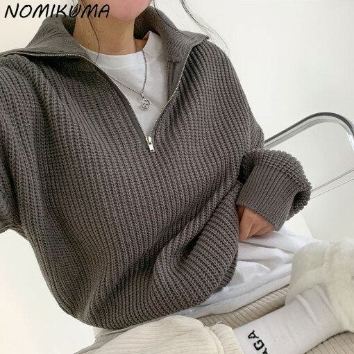 ノミクマ シック 秋冬 ジッパー ターンダウンカラー ニットセーター 長袖 2022年 プルオーバー ニット ロング オータム 秋物 ウィンター 冬物 kor21087458465