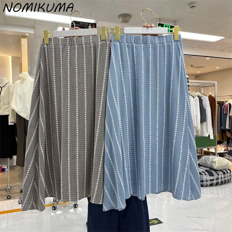Nomikuma シックな刺繍格子縞のスカートレディース 2022 秋スタイル因果 A ラインスカートボトムス段 Faldas Moda オータム 秋物 Aライン kor72225725242