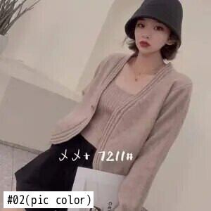 Nomikuma ショートニット 2 ピーストップス長袖 V ネックセーターカーディガンコート + ベーシックスリングベスト秋の女性セット 6X398 ロング オータム 秋物 Vネック kor2107592919