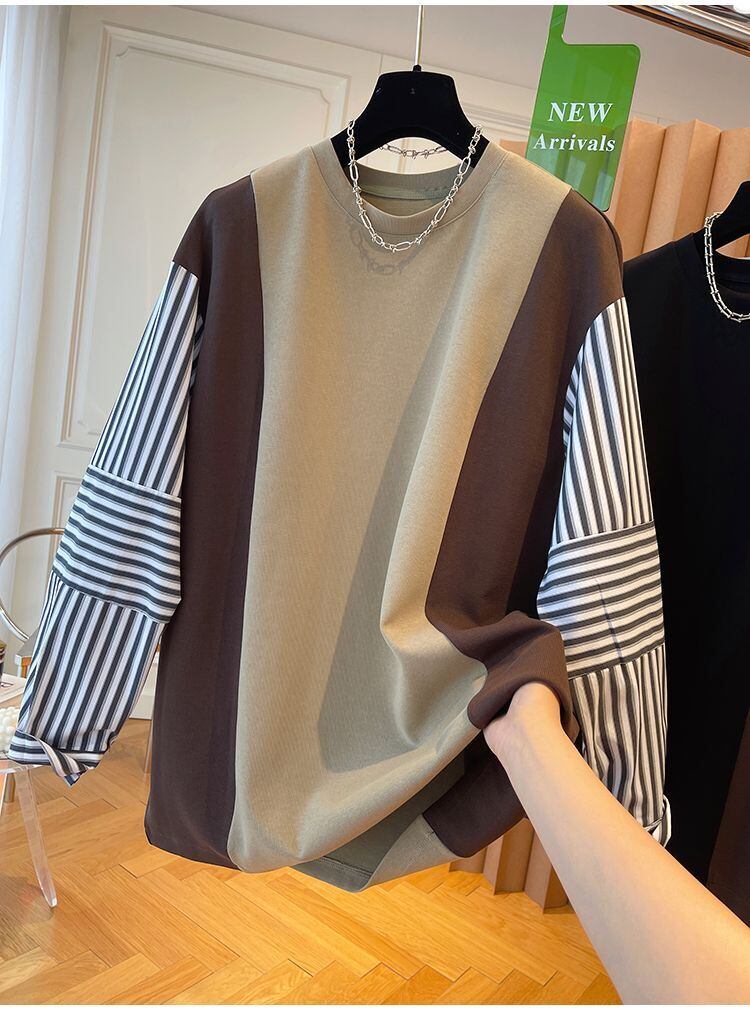 Nomikuma 因果コントラストカラーストライプ長袖パッチワークトレーナー女性 2022 トップジャンパープルオーバーパーカー ロング kor45150634043