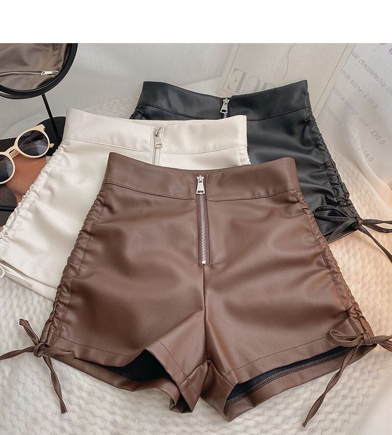 Nomikuma 巾着ひだワイドレッグ PU レザーショーツレディース 2022 秋冬ジッパーウエストショーツ s ショート オータム 秋物 ウィンター 冬物 ブルマー ワイドパンツ kor65544832906