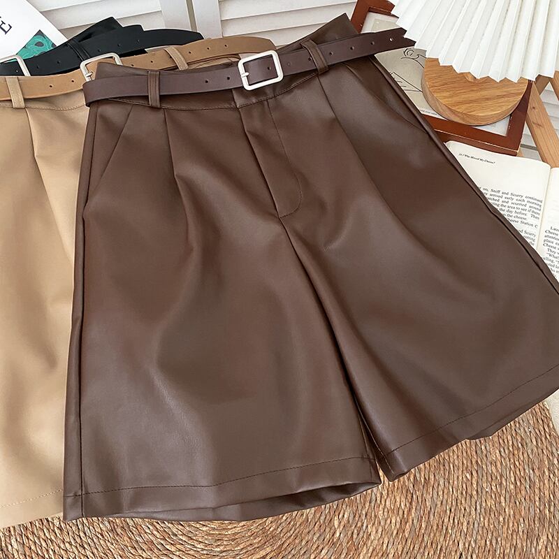 Nomikuma PU レザーショーツ女性ウエスト 2022 秋冬ボトムス因果無地ワイドレッグショート Feminima オータム 秋物 ウィンター 冬物 ブルマー ワイドパンツ ソリッドカラー kor25947736439