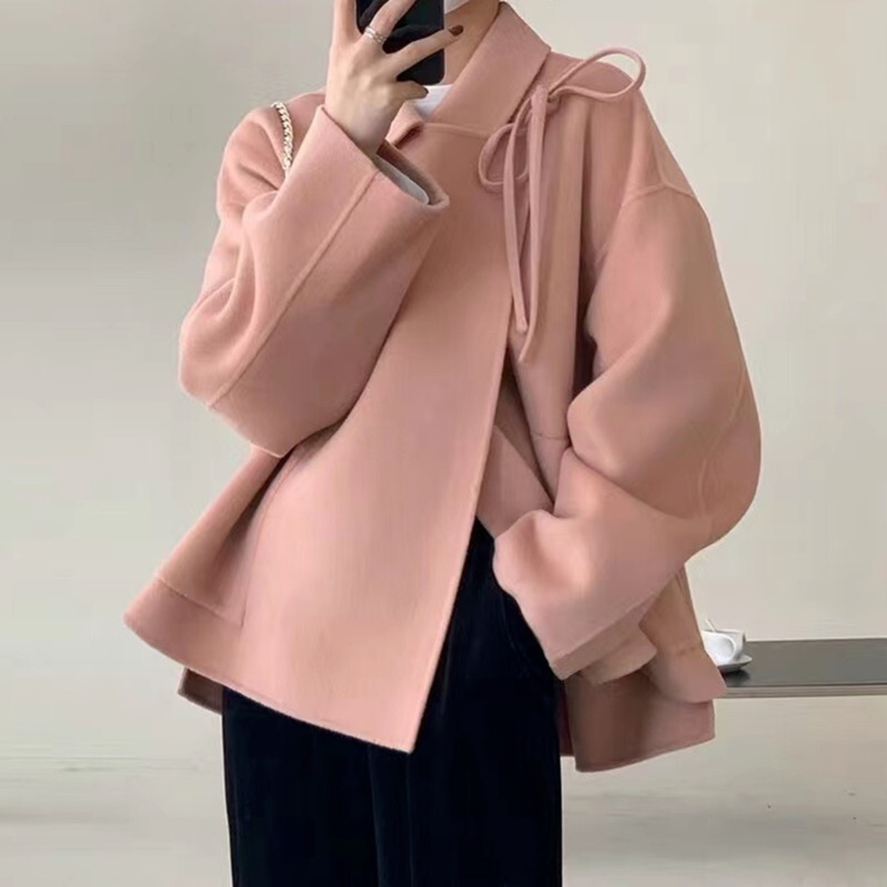 Nomikuma 2021 秋冬ウールコート女性ターンダウン襟蝶ネクタイジャケット因果長袖生き抜く 6V315 ロング リボン オータム 秋物 ウィンター 冬物 kor69161674699