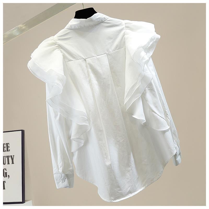 Nomikuma 3D フリルパッチワーク女性シャツ不規則なブラウストップス 2022 春長袖ターンダウン襟 ロング ラッフル スプリング 春物 kor53962976815