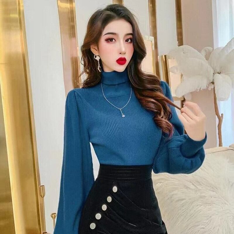 Nomikuma 2021 秋冬の基本的な女性セーターハーフタートルネックパフスリーブニットトップス固体スリムプルジャンパー 6L419 オータム 秋物 ウィンター 冬物 ソリッドカラー kor16702645572