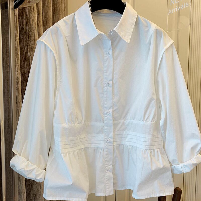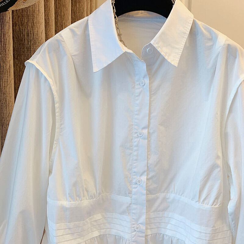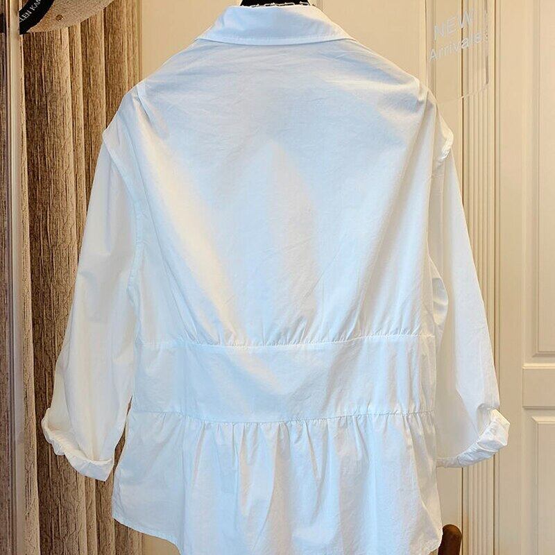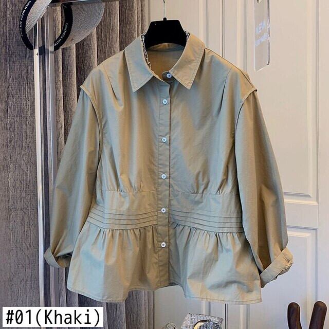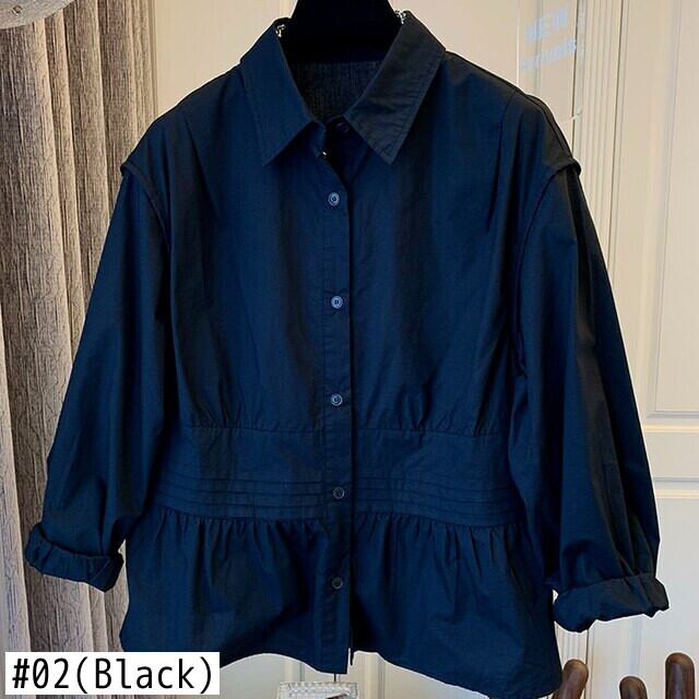 Nomikuma ひだパッチワーク女性シャツシックな長袖ターンダウン襟ブラウストップス 2021 秋 6Z370 ロング オータム 秋物 kor84672834429