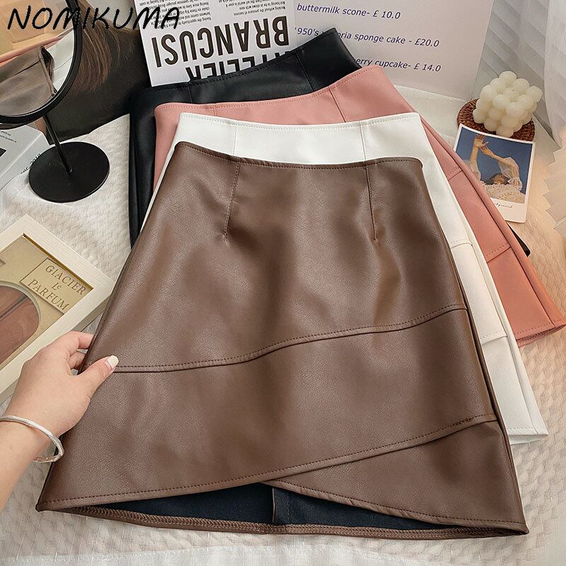 Nomikuma PU レザー イレギュラー A ライン ミニ スカート レディース 2022 秋冬 ボトムス カジュアル ウエスト スカート オータム 秋物 ウィンター 冬物 Aライン kor33901410900