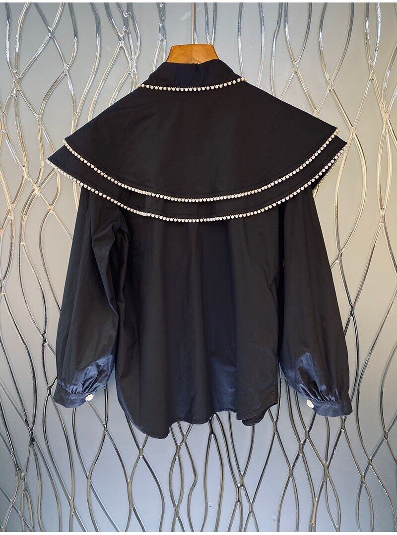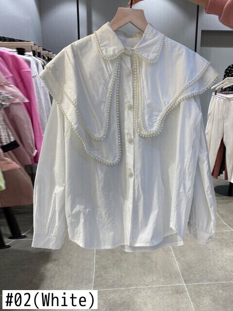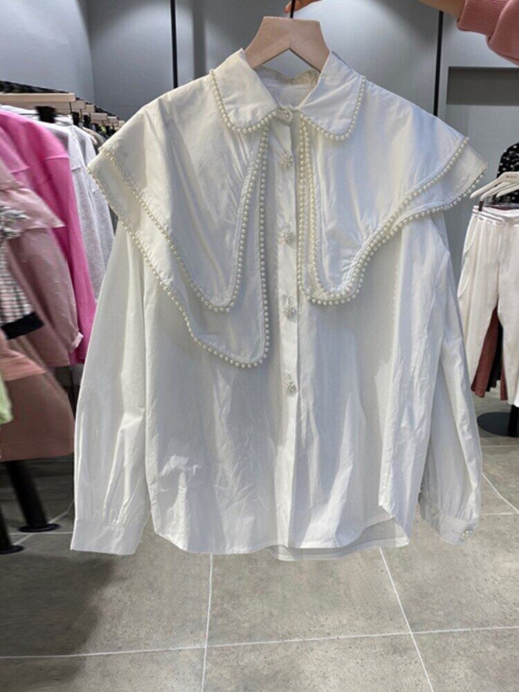 Nomikuma ダブルピーターパン襟ビーズブラウス女性 2022 秋長袖シャツ Blusa カミーサ ロング オータム 秋物 kor81955027263