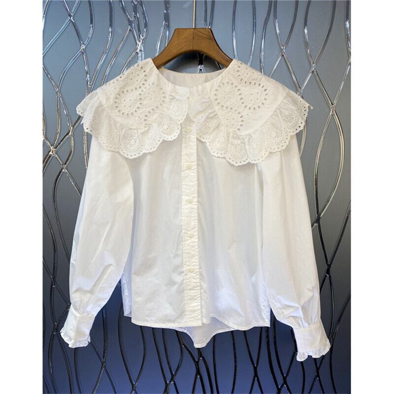Nomikuma 2022 春の女性シャツシックなレース中空アウトピーターパン襟ブラウス因果長袖トップスモーダ ロング スプリング 春物 kor22410525754