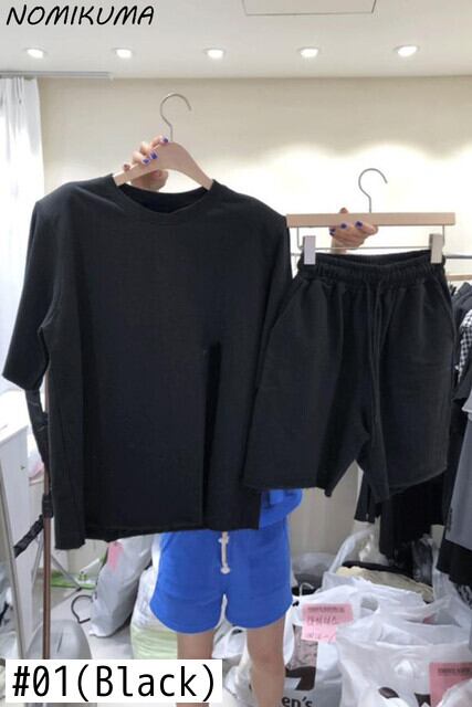Nomikuma 因果無地女性衣装 2022 夏半袖 O ネック Tシャツ + レースアップウエストワイドレッグショーツ 2 点セット ショート ハーフスリーブ サマー 夏物 ブルマー Oネック ワイドパンツ ソリッドカラー kor90483042154