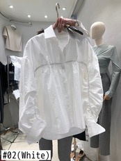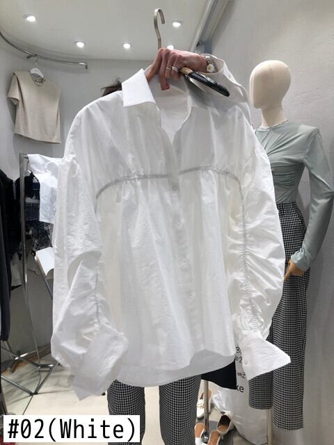Nomikuma プリーツランタンスリーブ女性ブラウスシャツ因果ターンダウン襟トップ 2021 春デモーダ 6E934 スプリング 春物 kor19161448060