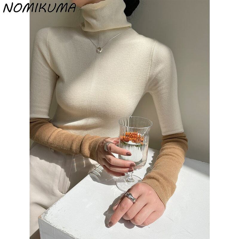 Nomikuma ヒットカラー長袖ターントルネックニット秋冬ベーシック女性セーター 2022 スリムストレッチトップス ロング オータム 秋物 ウィンター 冬物 kor48183664016