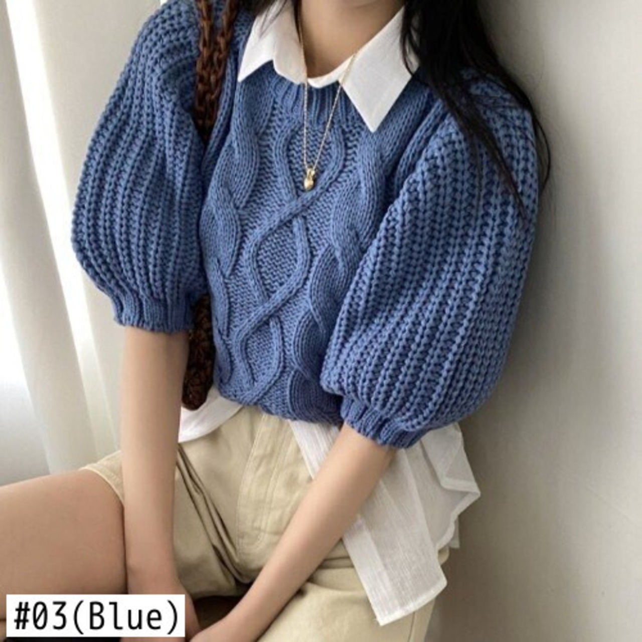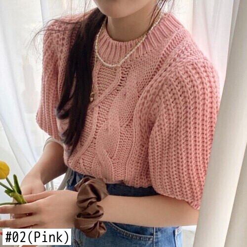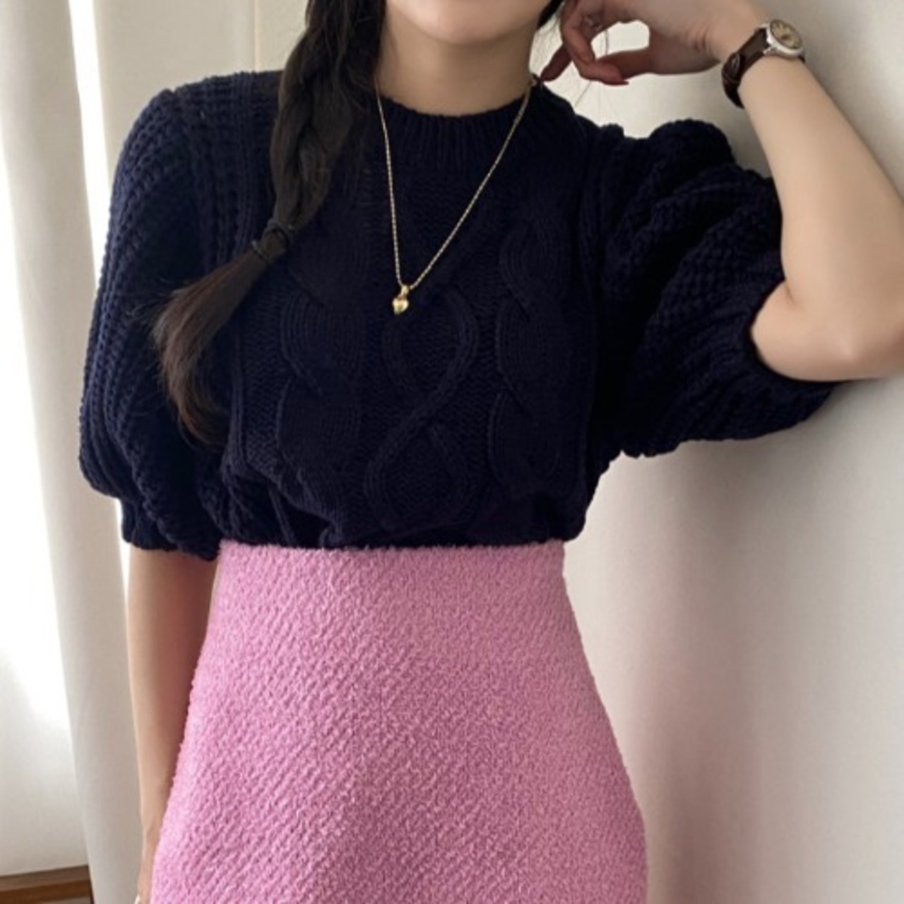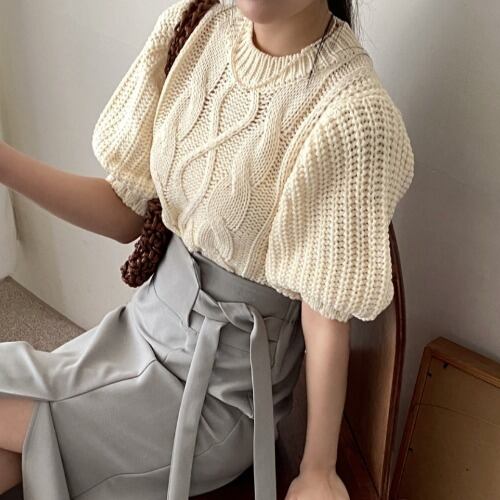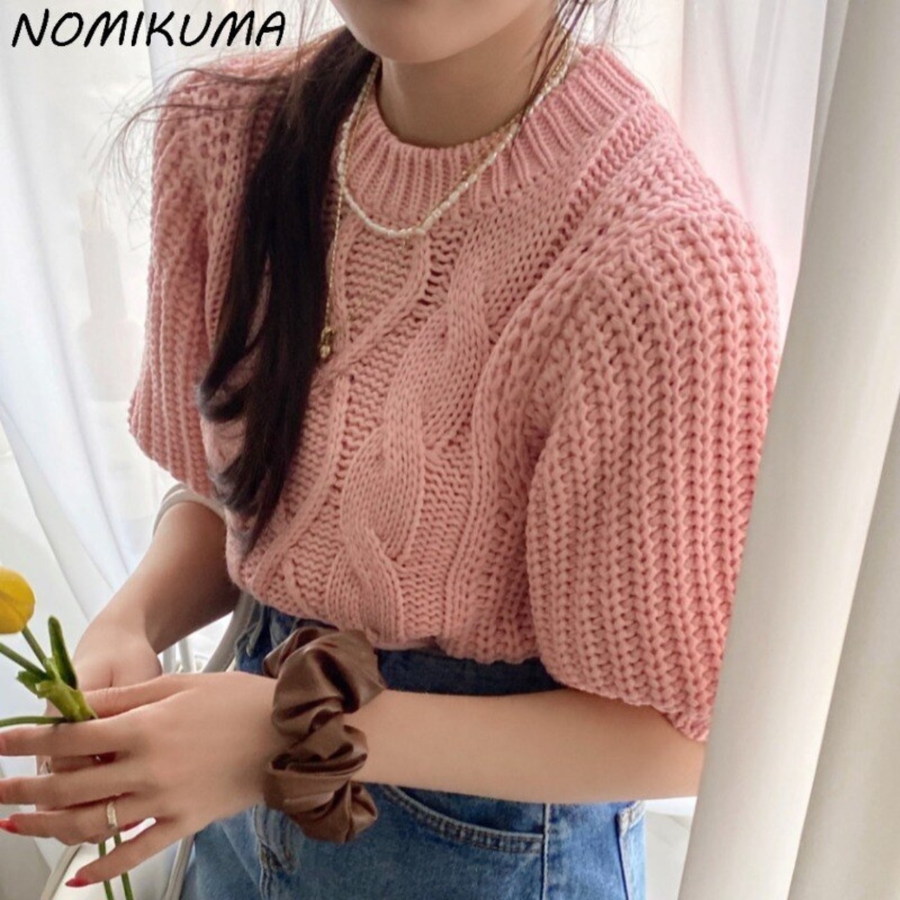 Nomikuma 因果パフスリーブ女性セーターシックな O ネックプルオーバーニット 2022 春夏甘いツイストニットトップス 大人ガーリー スウィート キュート カジュアル スプリング 春物 サマー 夏物 Oネック kor31814411915