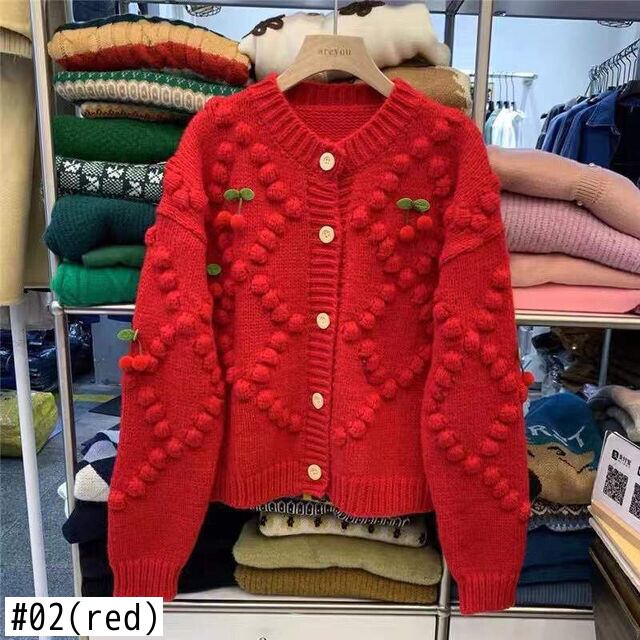 Nomikuma 女性カーディガンシックな 3D チェリー甘いニットトップス因果 2022 秋冬ニットセーターコート 大人ガーリー スウィート キュート カジュアル オータム 秋物 ウィンター 冬物 kor1319909596