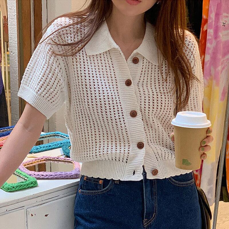 ノミクマ ターンダウンカラー セーター コート 因果 中抜き シンゲル ブレスト ショート ニット カーディガン 2022 ニット kor8871748522