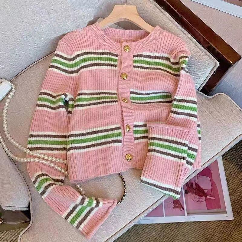 Nomikuma ストライプ長袖 O ネックカーディガンセーター 2022 秋の女性ニットトップスヒットカラーニットコート ロング オータム 秋物 Oネック kor88178600589