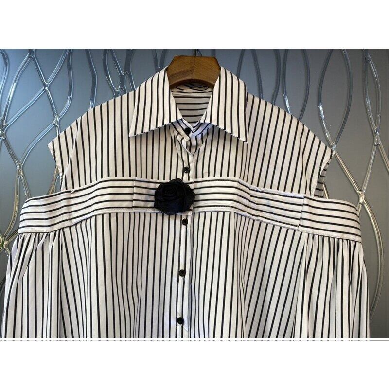 Nomikuma ストライプ女性ブラウスセクシーなストラップレス長袖シャツ因果 2022 秋のシックな 3D 花 Feminima ロング オータム 秋物 フラワーデザイン kor1334689591
