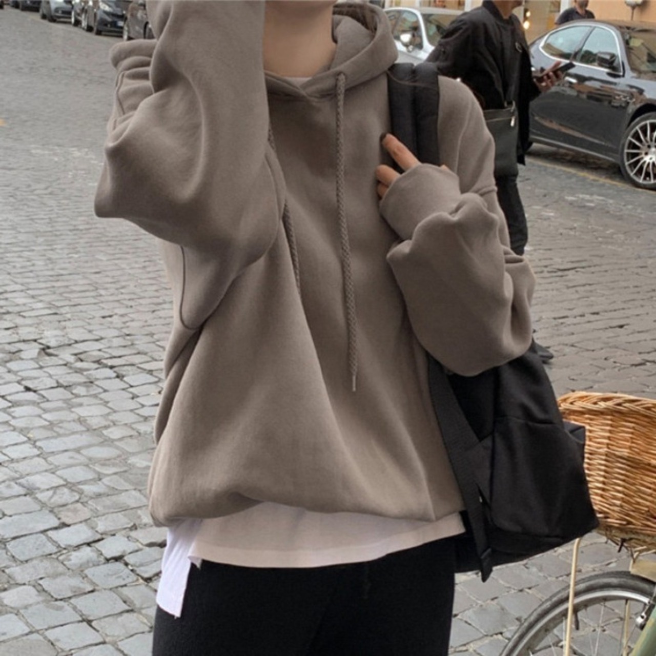 Nomikuma シックな厚みのフード付きプルオーバースウェットシャツ女性秋冬ジャンパー因果 2022 固体パーカートップ オータム 秋物 ウィンター 冬物 ソリッドカラー kor21447351963