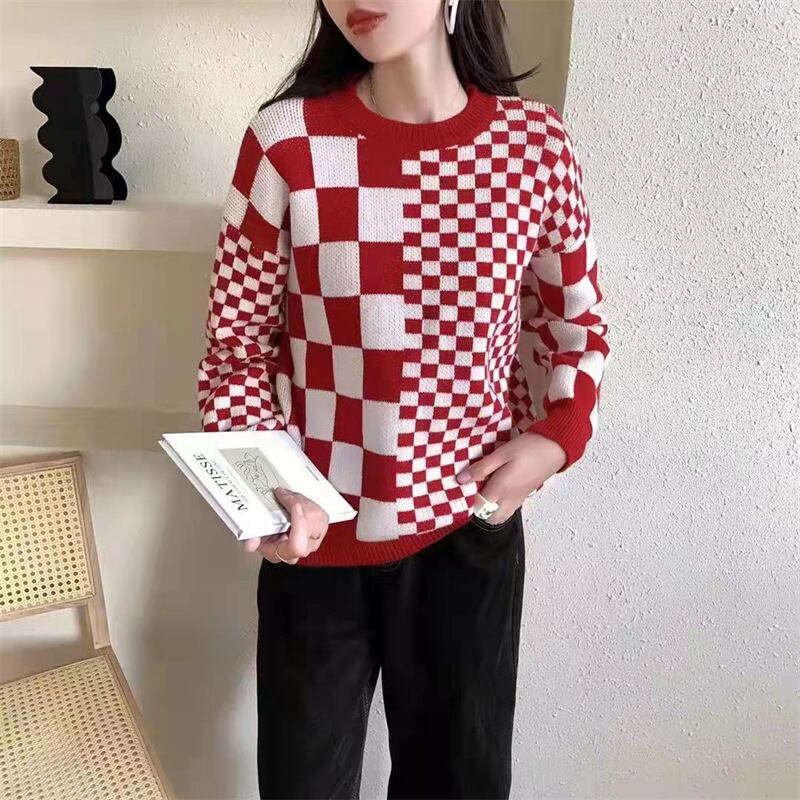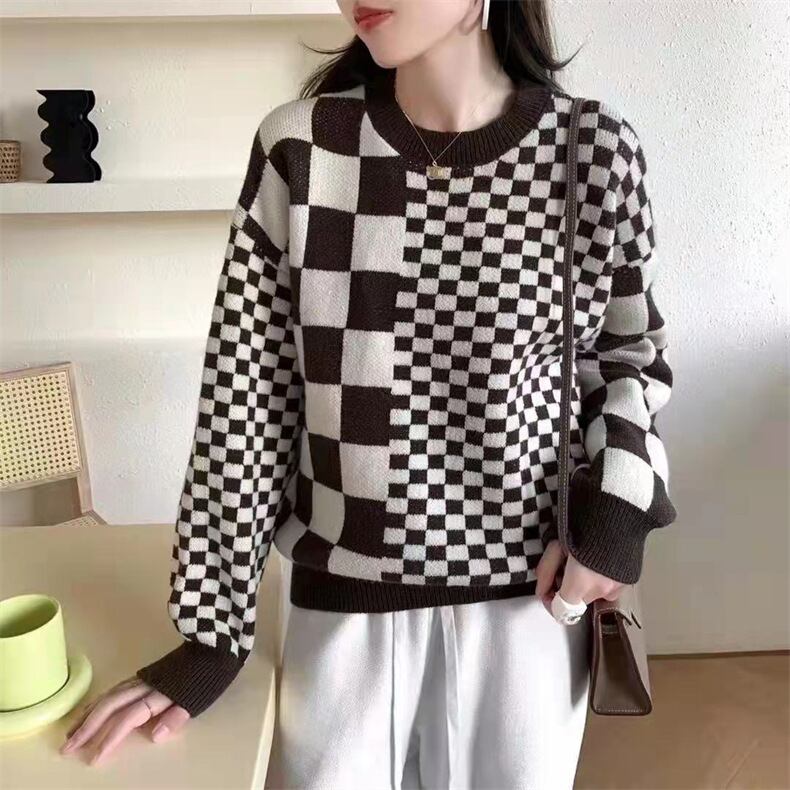 Nomikuma プルチェック柄 2022 秋冬セーター女性長袖 O ネックプルオーバーニットトップスセーター ロング オータム 秋物 ウィンター 冬物 Oネック kor681762004