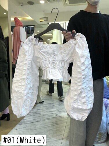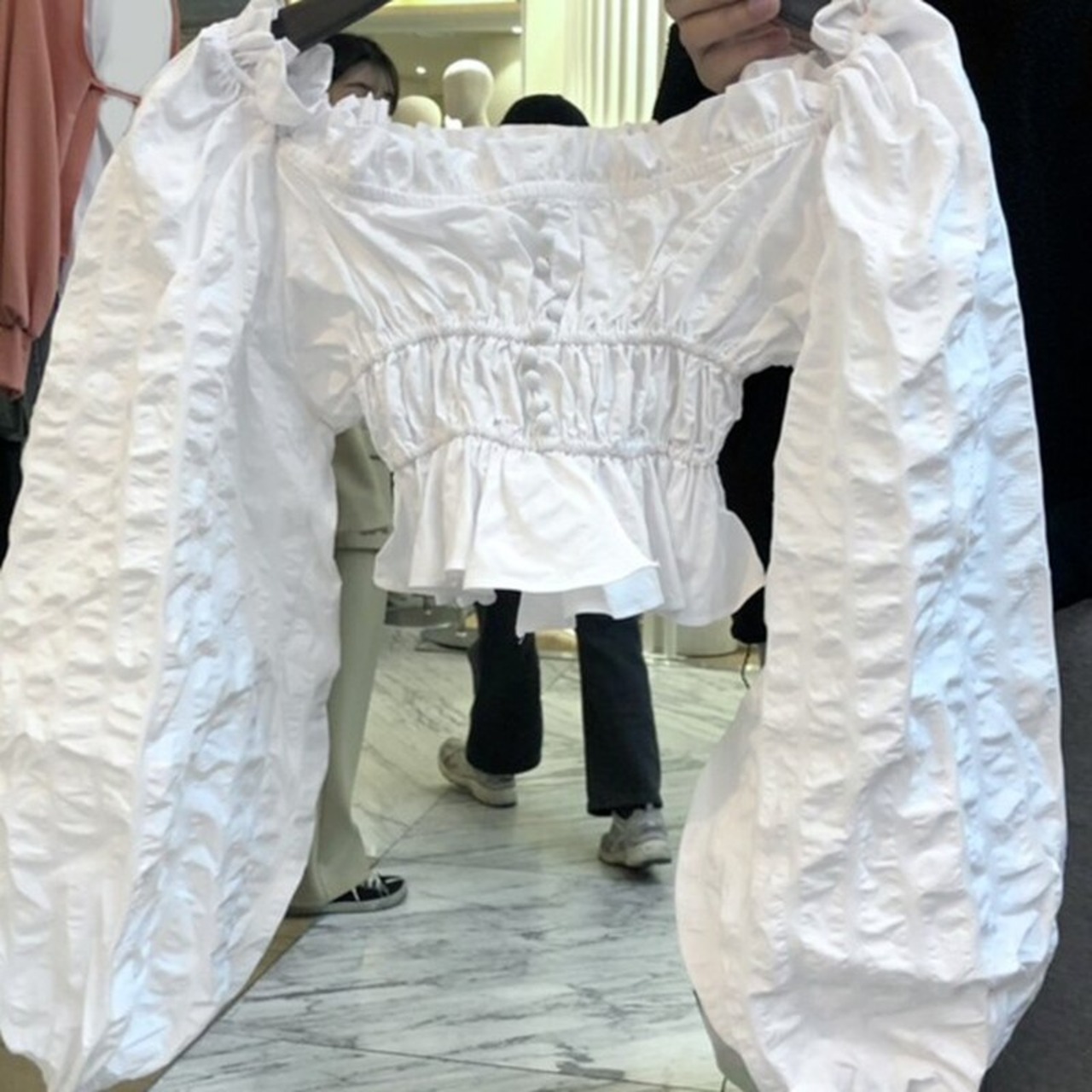 ノミクマ スイート オフショルダー ブラウス シャツ ランタン スリーブ スリム ショート レディース トップス 2022 春 デ ランタンスリーブ 大人ガーリー スウィート キュート カジュアル スプリング 春物 kor73103481491