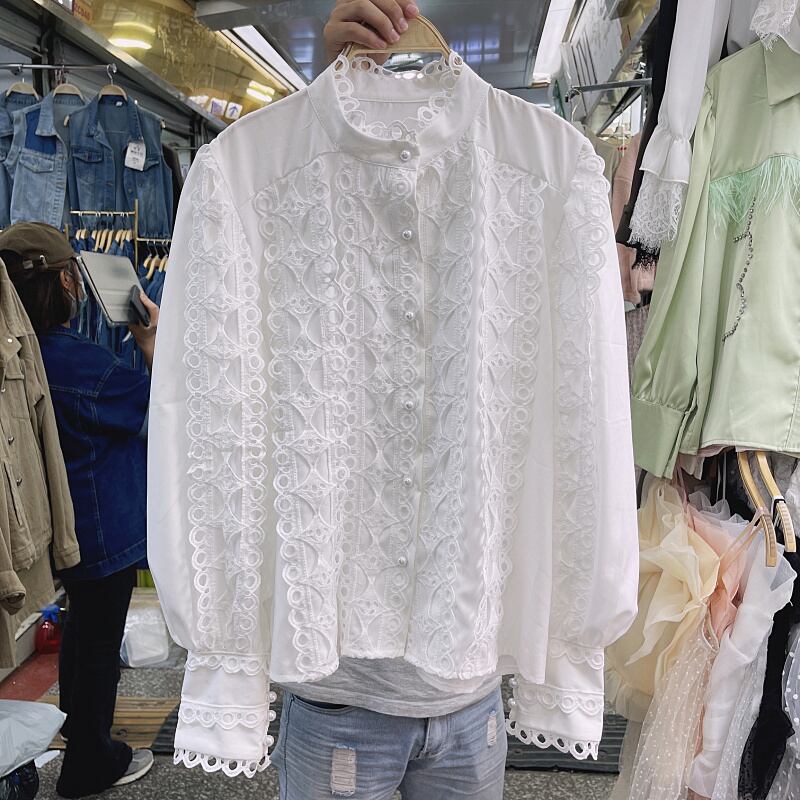 Nomikuma レースパッチワークブラウストップ女性 2022 秋ランタンスリーブスタンドネックシャツカミーサ オータム 秋物 kor58891309172