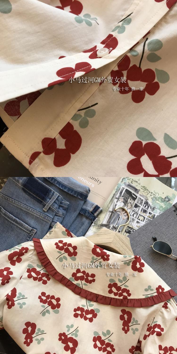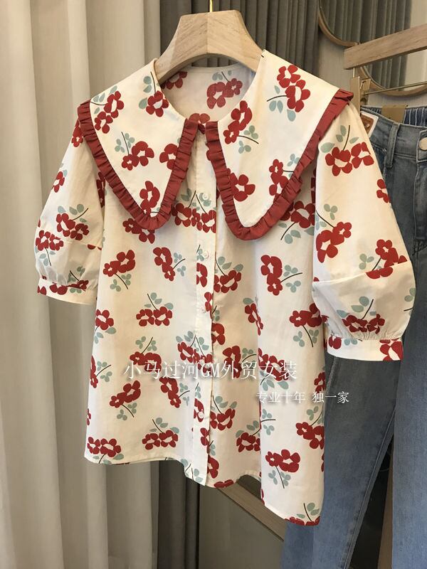 Nomikuma 花柄レディーストップシックなフリルピーターパン襟パフスリーブブラウスシャツ 2022 夏甘い Feminimos 大人ガーリー スウィート キュート カジュアル サマー 夏物 kor5151438586