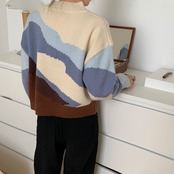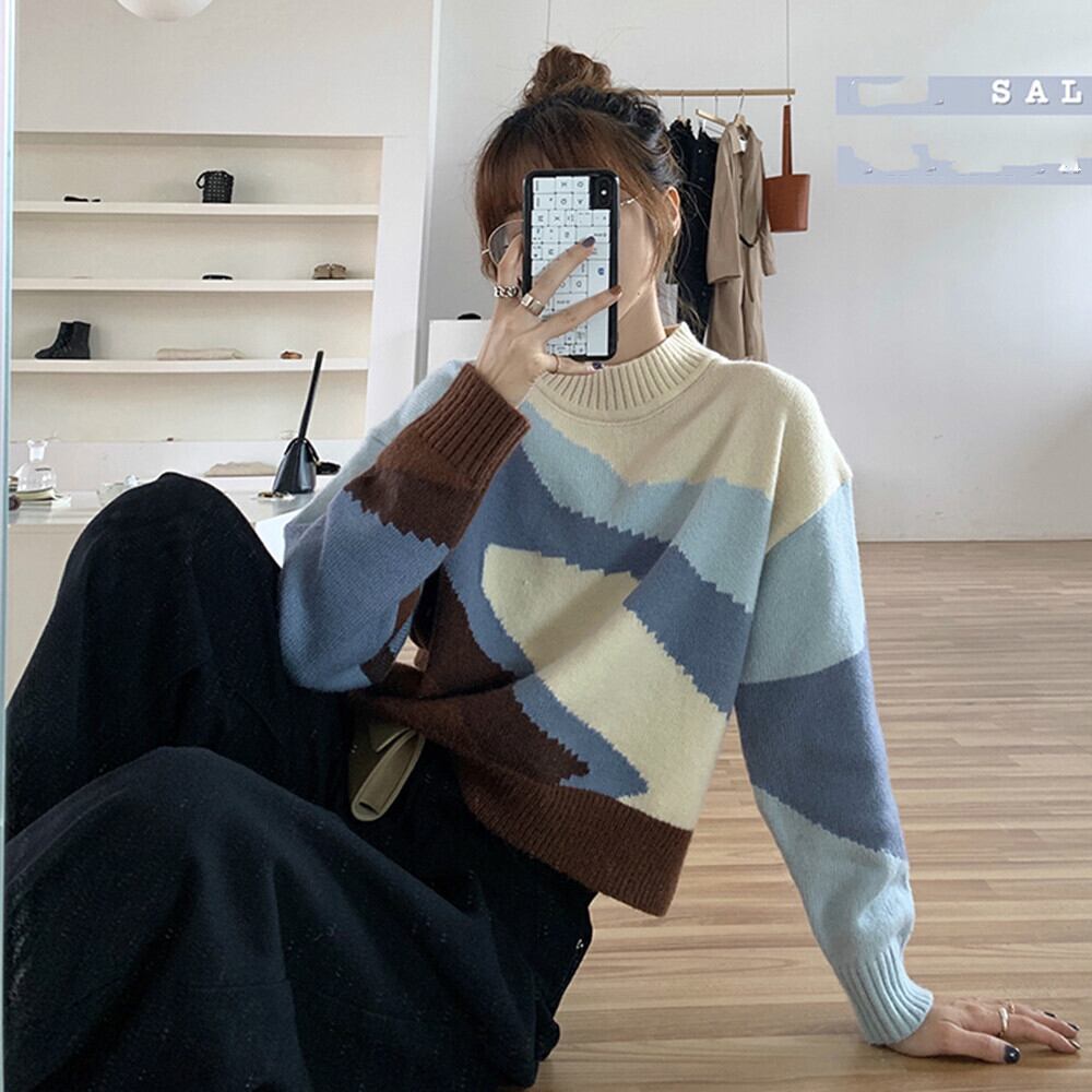 ノミクマ コントラストカラー ショートセーター 長袖 ニット プルオーバー 2020 秋冬 ハーフタートルネック ニット トップス 6D510 ロング オータム 秋物 ウィンター 冬物 kor5856665731