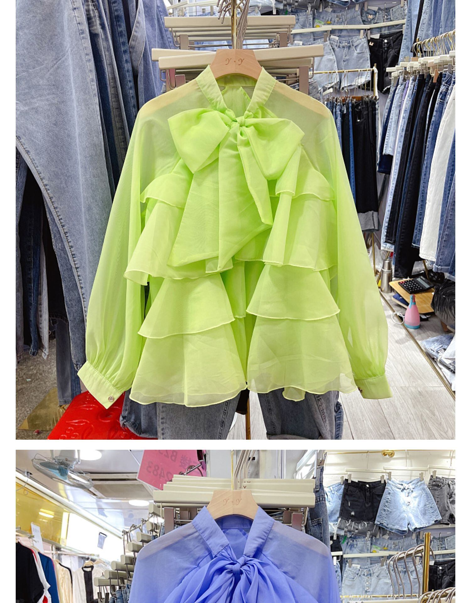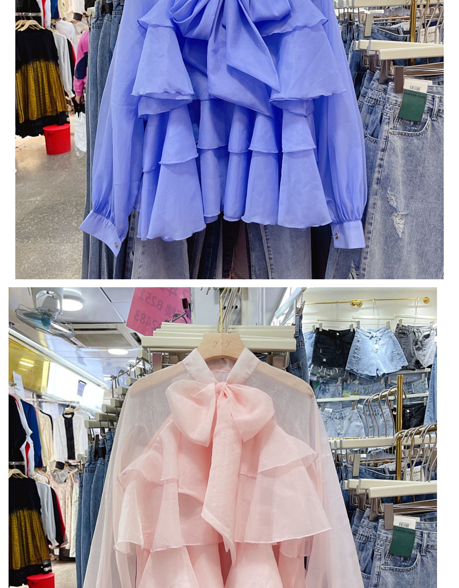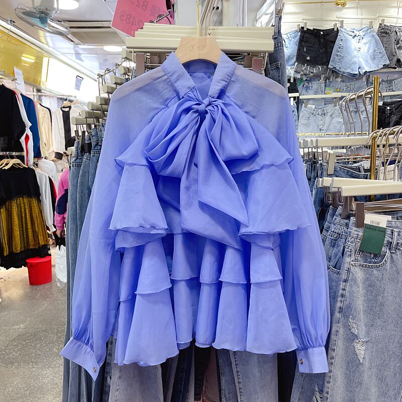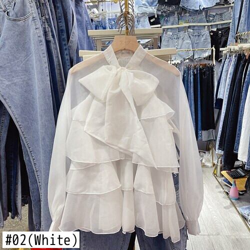 Nomikuma 2022 春シフォンブラウス因果フリル女性トップシックな弓包帯スタンドネック長袖 Shirtt ロング リボン スプリング 春物 kor35970051275
