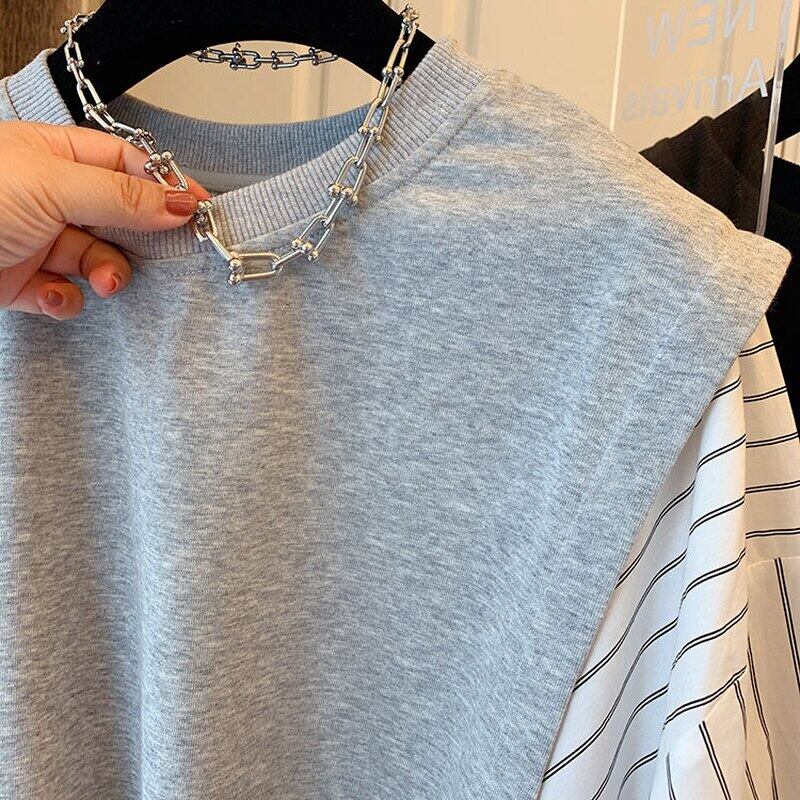 Nomikuma ヒットカラーパッチワークストライプスウェットシャツ因果長袖 O ネック女性ジャンパー 2021 秋プルオーバーパーカー 6Z373 ロング オータム 秋物 Oネック kor97081777812