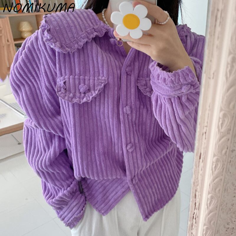 Nomikuma シックな甘いピーターパン襟ブラウスコート因果パフスリーブ女性シャツジャケット 2022 春ベロア生き抜くトップ 大人ガーリー スウィート キュート カジュアル スプリング 春物 kor45044990893