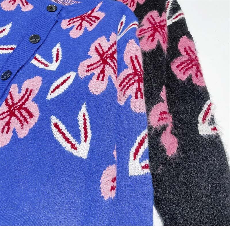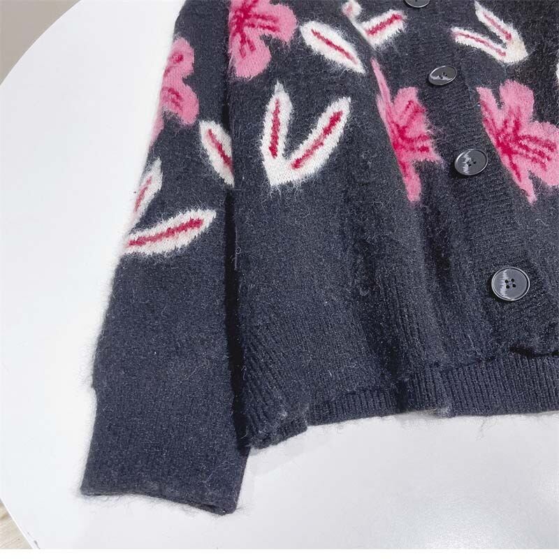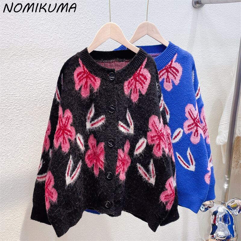 Nomikuma モヘア花セーターカーディガン女性ニット 2022 秋冬コート因果長袖 O ネックプルトップス ロング オータム 秋物 ウィンター 冬物 Oネック フラワーデザイン kor89522596211
