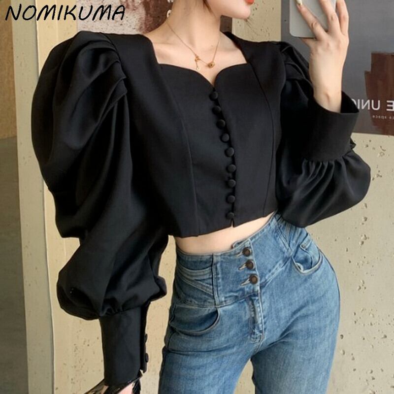 Nomikuma シックなパフスリーブスクエアカラーブラウス 2022 春の女性シャツショートデ 6Q018 スプリング 春物 スクウェア kor9818069603