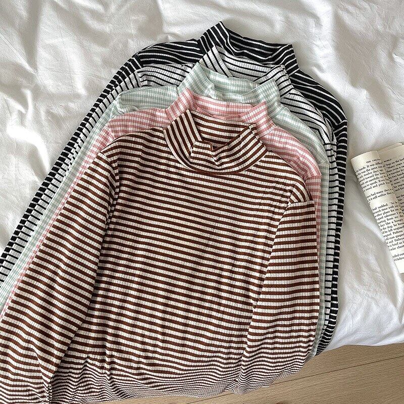 Nomikuma ハーフカラーストライプベーシック女性トップス Tシャツ 2022 秋グラフィック Tシャツ長袖 Y2k トップ ロング オータム 秋物 kor63971912245