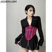 Nomikuma 2022 秋ミディアムロングブレザー女性シングルブレストノッチカラースーツジャケット + ピンクスリム Wiast ベルト オータム 秋物 ハーネス kor94576425136