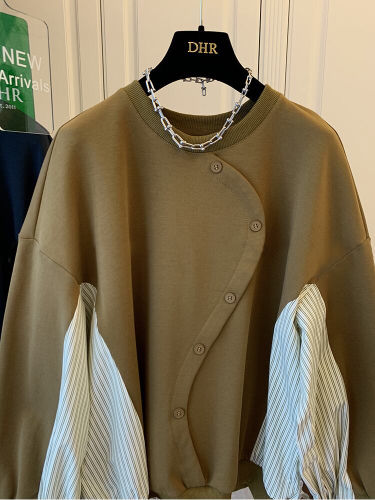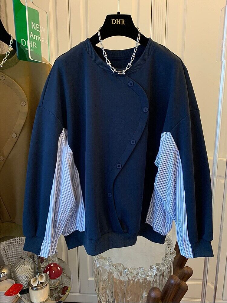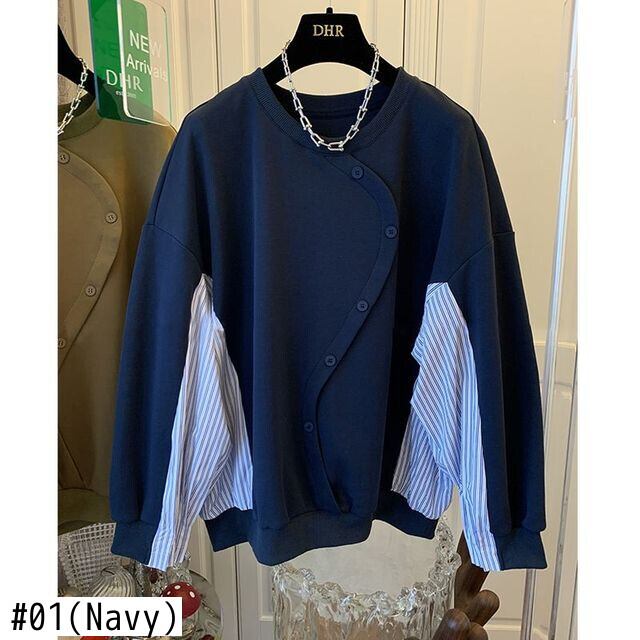 Nomikuma 2022 パッチワークストライプブラウスボタントレーナートップス女性偽二枚因果 2022 秋プルオーバーパーカー オータム 秋物 kor68739552083
